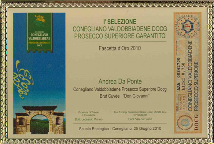 "FASCETTA D'ORO 2010" à la 1ère sélection du Prosecco Superiore Garantito.